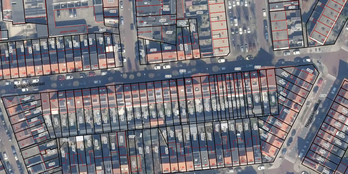 Zuidpolderstraat 215 is gelegen op kadastraal perceel HLM01E6133. Deze kadastrale aanduiding is uniek en wordt gebruikt door het Kadaster om eigendomsrechten en andere zakelijke rechten vast te leggen. Het perceel maakt onderdeel uit van de kadastrale gemeente Haarlem.