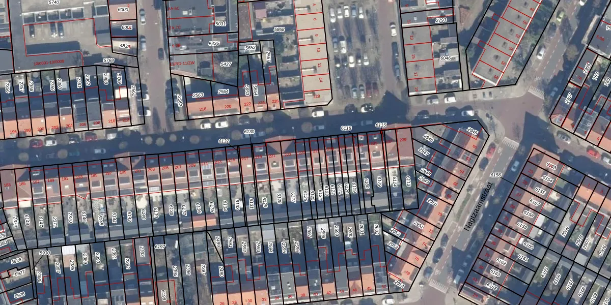 Het perceel waarop het adres ligt is HLM01-E-6126. De afkorting 'HLM01' staat voor kadastrale gemeente Haarlem. Het perceel is kleiner dan gemiddeld in Haarlem. Het perceel is 81 m² groot, terwijl het gemiddelde ligt op 328,33 m². Het grootste perceel in de kadastrale gemeente is 13,9 ha. Het kleinste perceel heeft een oppervlakte van 0 m². Er zijn geen andere adressen aanwezig op het perceel. De laatste wijziging in het de Basisregistratie Kadaster (BRK) was op 04-10-2001.