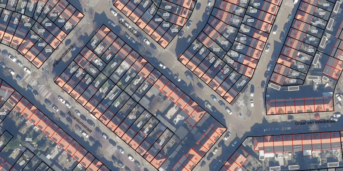 Het perceel waarop Zwaardstraat 20 staat heeft een oppervlakte van 1823 m². Dit is een zeer groot perceel. De perceeloppervlakte wordt geregistreerd door het Kadaster. Gedetailleerde informatie over de maten van dit perceel kunt u vinden in het rapport Kadastrale kaart met maatvoering van Zwaardstraat 20.