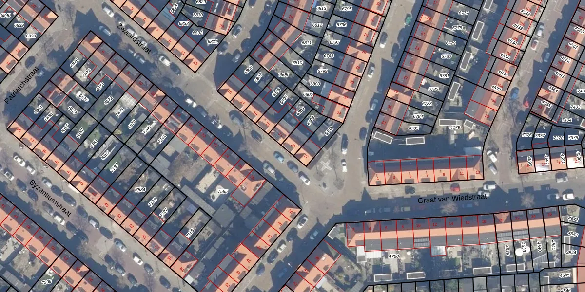 Het perceel waarop Zwaardstraat 25 staat heeft een oppervlakte van 94 m². Dit is een klein perceel. De perceeloppervlakte wordt geregistreerd door het Kadaster. Gedetailleerde informatie over de maten van dit perceel kunt u vinden in het rapport Kadastrale kaart met maatvoering van Zwaardstraat 25.