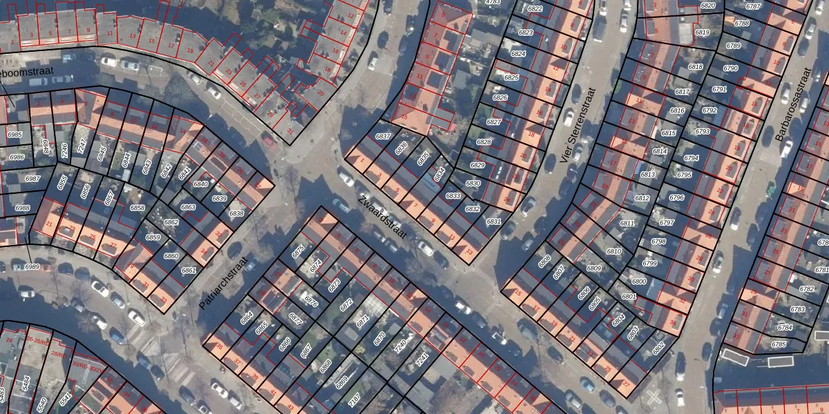 Gebruik de zoekbalk of klik op een perceel voor informatie over de adressen binnen dit perceel.