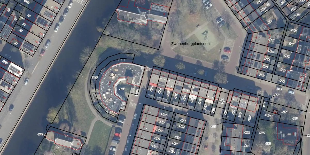 Gebruik de zoekbalk of klik op een perceel voor informatie over de adressen binnen dit perceel.