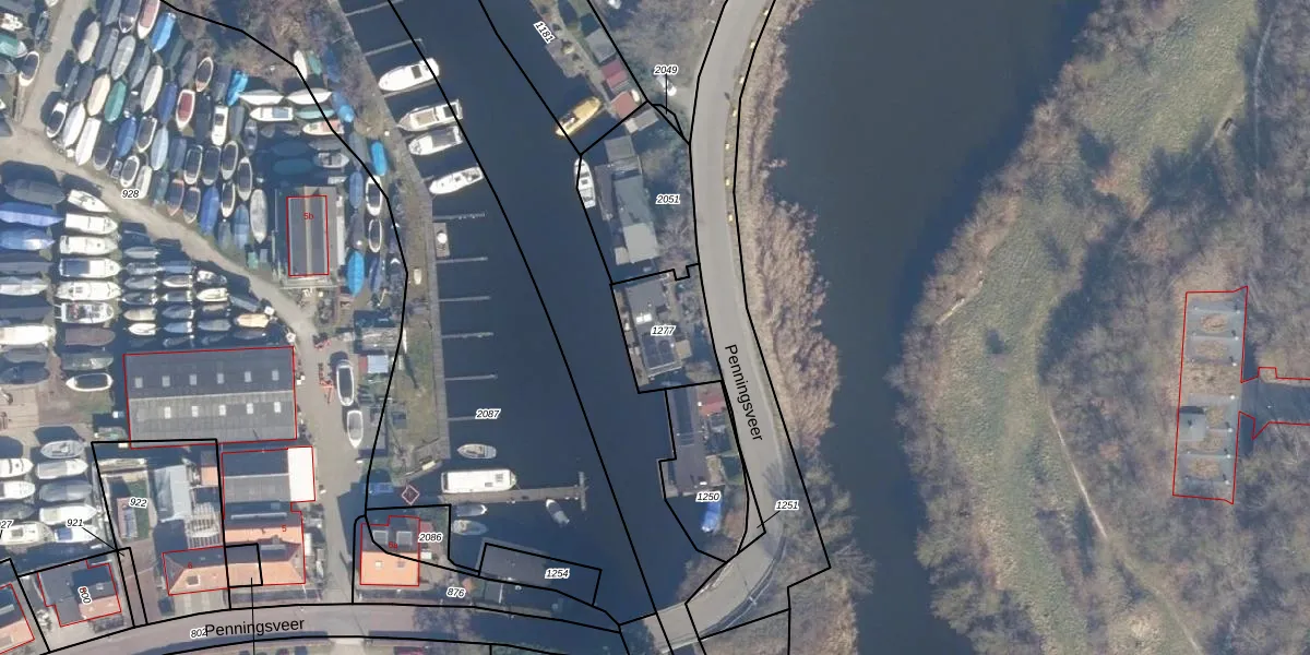 Penningsveer 5-ab is gelegen op kadastraal perceel HLM04H1277. Deze kadastrale aanduiding is uniek en wordt gebruikt door het Kadaster om eigendomsrechten en andere zakelijke rechten vast te leggen. Het perceel maakt onderdeel uit van de kadastrale gemeente Haarlemmerliede en Spaarnwoude.