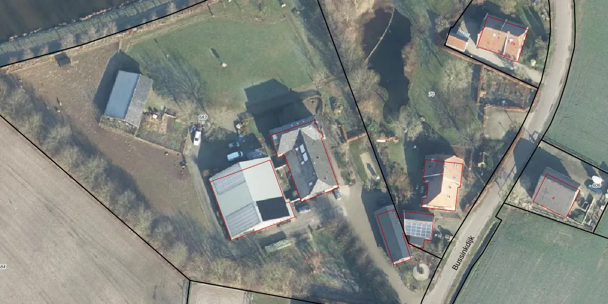 Het perceel waarop Bussinkdijk 3 staat heeft een oppervlakte van 9665 m². Dit is een zeer groot perceel. De perceeloppervlakte wordt geregistreerd door het Kadaster. Gedetailleerde informatie over de maten van dit perceel kunt u vinden in het rapport Kadastrale kaart met maatvoering van Bussinkdijk 3.