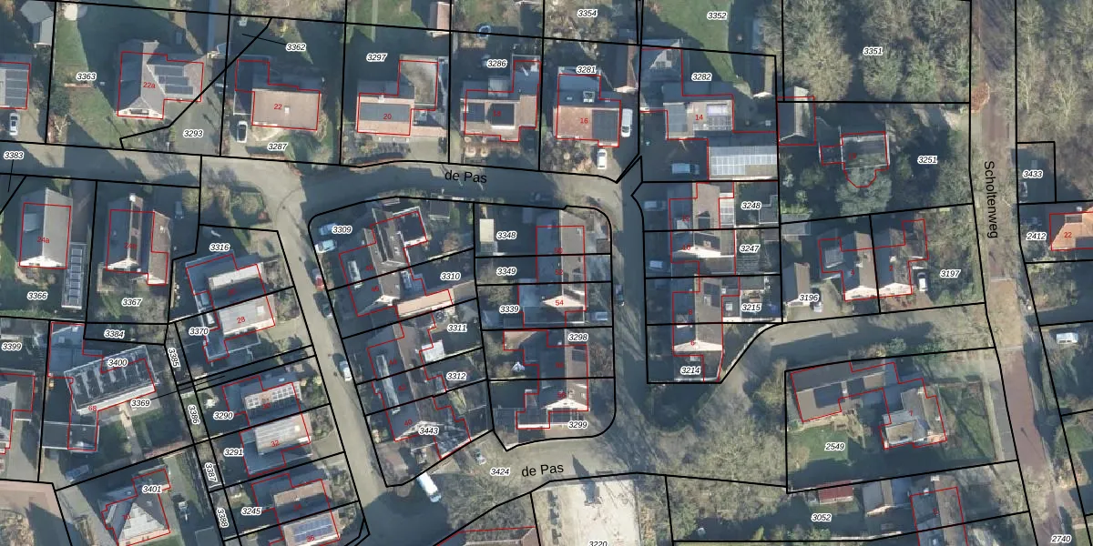 de Pas 52 is gelegen op kadastraal perceel GTR00D3349. Deze kadastrale aanduiding is uniek en wordt gebruikt door het Kadaster om eigendomsrechten en andere zakelijke rechten vast te leggen. Het perceel maakt onderdeel uit van de kadastrale gemeente Geesteren.