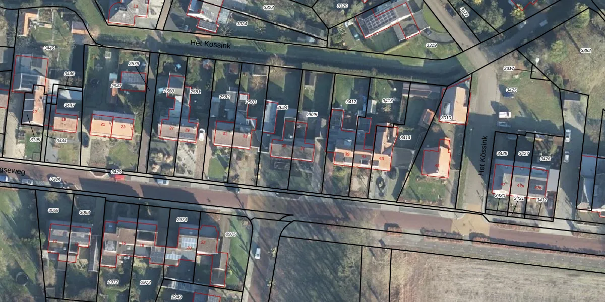 Het adres ligt op het perceel GTR00-D-2625, dat zich in de kadastrale gemeente Geesteren bevindt. Het perceel is kleiner dan gemiddeld in Geesteren. Het perceel is 430 m² groot, terwijl het gemiddelde ligt op 8642,12 m². Het kleinste perceel in de kadastrale gemeente is 0 m² groot. De grootste perceeloppervlakte is 31,3 ha. Dit is het enige adres dat aanwezig is op het perceel. In de Basisregistratie Kadaster (BRK) werden de grenzen van het perceel geregistreerd op 12-05-2022.