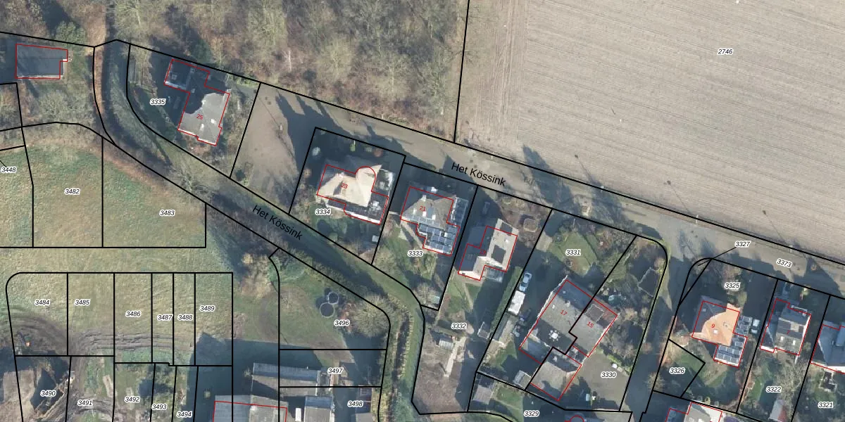 Het perceel waarop Het Kössink 21 staat heeft een oppervlakte van 518 m². Dit is een groot perceel. De perceeloppervlakte wordt geregistreerd door het Kadaster. Gedetailleerde informatie over de maten van dit perceel kunt u vinden in het rapport Kadastrale kaart met maatvoering van Het Kössink 21.