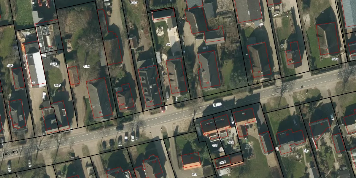 De Hoeven 32 is gelegen op kadastraal perceel VMN00N39. Deze kadastrale aanduiding is uniek en wordt gebruikt door het Kadaster om eigendomsrechten en andere zakelijke rechten vast te leggen. Het perceel maakt onderdeel uit van de kadastrale gemeente Vlijmen.