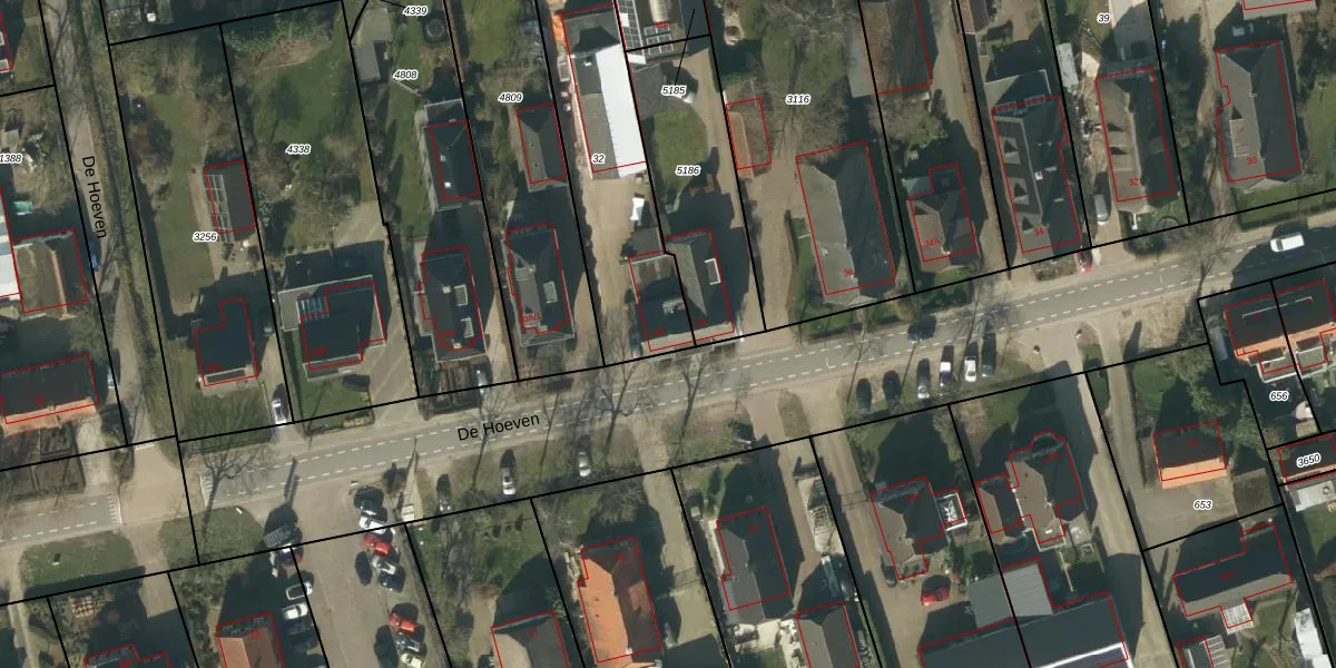Het perceel waarop De Hoeven 40 staat heeft een oppervlakte van 750 m². Dit is een groot perceel. De perceeloppervlakte wordt geregistreerd door het Kadaster. Gedetailleerde informatie over de maten van dit perceel kunt u vinden in het rapport Kadastrale kaart met maatvoering van De Hoeven 40.