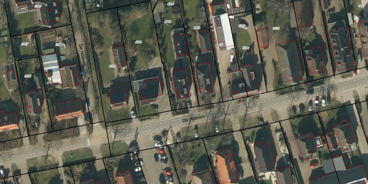 Het perceel waarop De Hoeven 40-A staat heeft een oppervlakte van 945 m². Dit is een groot perceel. De perceeloppervlakte wordt geregistreerd door het Kadaster. Gedetailleerde informatie over de maten van dit perceel kunt u vinden in het rapport Kadastrale kaart met maatvoering van De Hoeven 40-A.