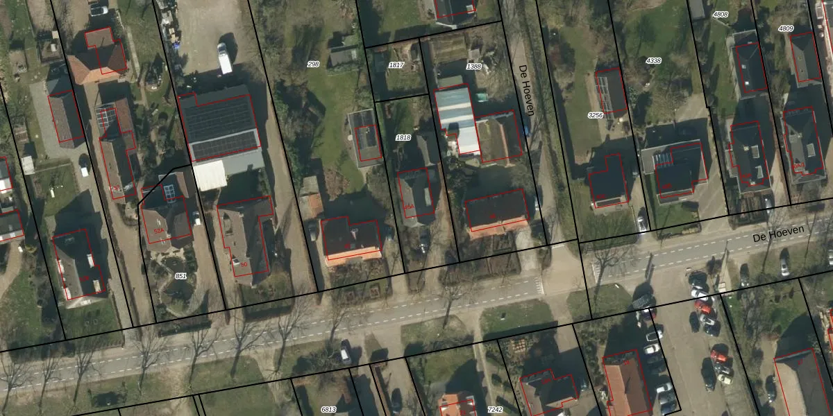Het perceel waarop De Hoeven 46-A staat heeft een oppervlakte van 528 m². Dit is een groot perceel. De perceeloppervlakte wordt geregistreerd door het Kadaster. Gedetailleerde informatie over de maten van dit perceel kunt u vinden in het rapport Kadastrale kaart met maatvoering van De Hoeven 46-A.