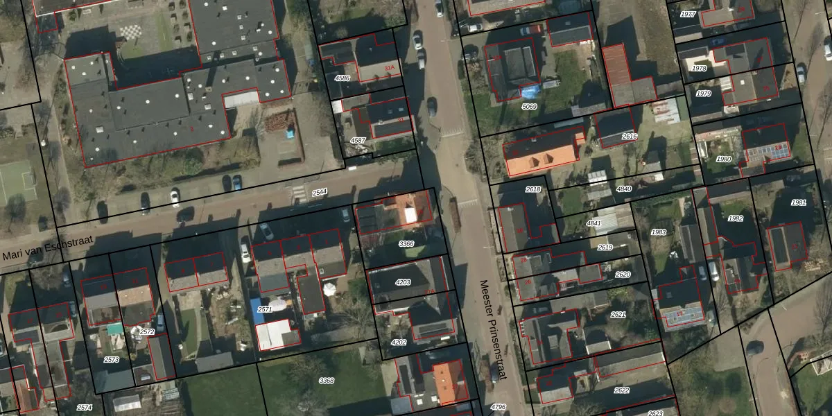Meester Prinsenstraat 29 is gelegen op kadastraal perceel VMN00N3366. Deze kadastrale aanduiding is uniek en wordt gebruikt door het Kadaster om eigendomsrechten en andere zakelijke rechten vast te leggen. Het perceel maakt onderdeel uit van de kadastrale gemeente Vlijmen.