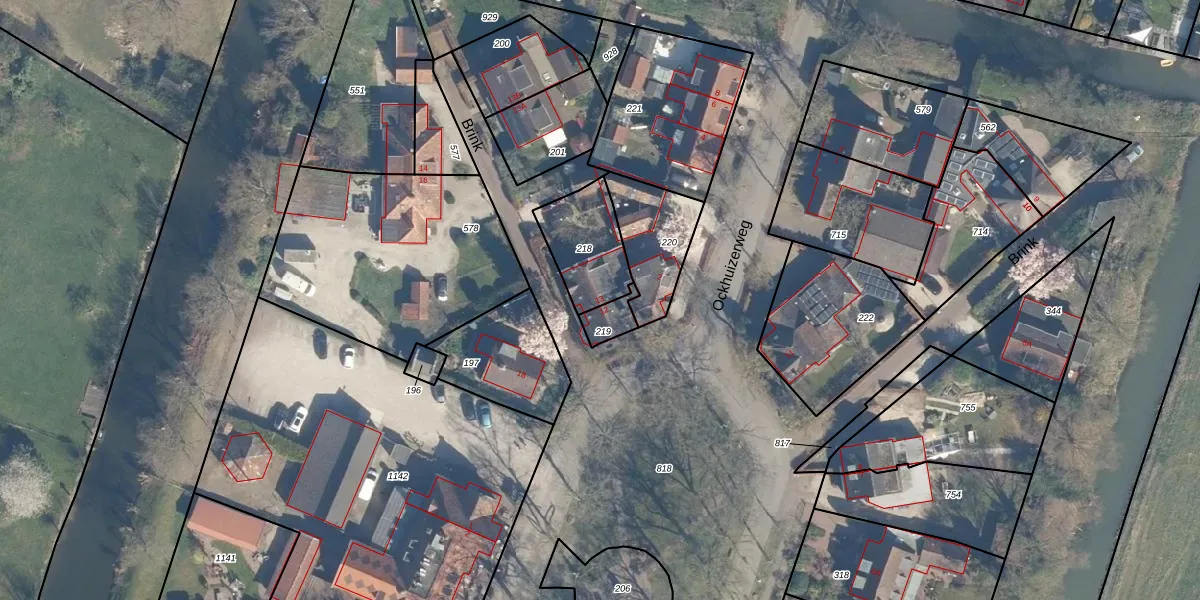 Het perceel waarop Brink 13 staat heeft een oppervlakte van 219 m². Dit is een middelgroot perceel. De perceeloppervlakte wordt geregistreerd door het Kadaster. Gedetailleerde informatie over de maten van dit perceel kunt u vinden in het rapport Kadastrale kaart met maatvoering van Brink 13.