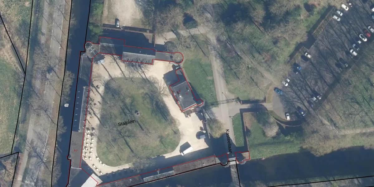 Het perceel waarop Kasteellaan 1 staat heeft een oppervlakte van 49,1 ha. Dit is een zeer groot perceel. De perceeloppervlakte wordt geregistreerd door het Kadaster. Gedetailleerde informatie over de maten van dit perceel kunt u vinden in het rapport Kadastrale kaart met maatvoering van Kasteellaan 1.