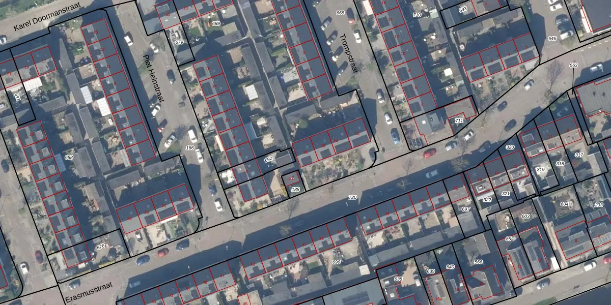 Het perceel waarop Erasmusstraat 18 staat heeft een oppervlakte van 3432 m². Dit is een zeer groot perceel. De perceeloppervlakte wordt geregistreerd door het Kadaster. Gedetailleerde informatie over de maten van dit perceel kunt u vinden in het rapport Kadastrale kaart met maatvoering van Erasmusstraat 18.