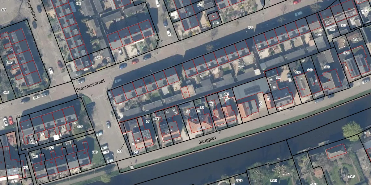 Het perceel waarop Erasmusstraat 45 staat heeft een oppervlakte van 2370 m². Dit is een zeer groot perceel. De perceeloppervlakte wordt geregistreerd door het Kadaster. Gedetailleerde informatie over de maten van dit perceel kunt u vinden in het rapport Kadastrale kaart met maatvoering van Erasmusstraat 45.