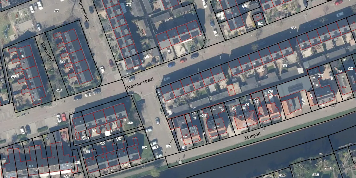 Het perceel waarop Erasmusstraat 55 staat heeft een oppervlakte van 2370 m². Dit is een zeer groot perceel. De perceeloppervlakte wordt geregistreerd door het Kadaster. Gedetailleerde informatie over de maten van dit perceel kunt u vinden in het rapport Kadastrale kaart met maatvoering van Erasmusstraat 55.