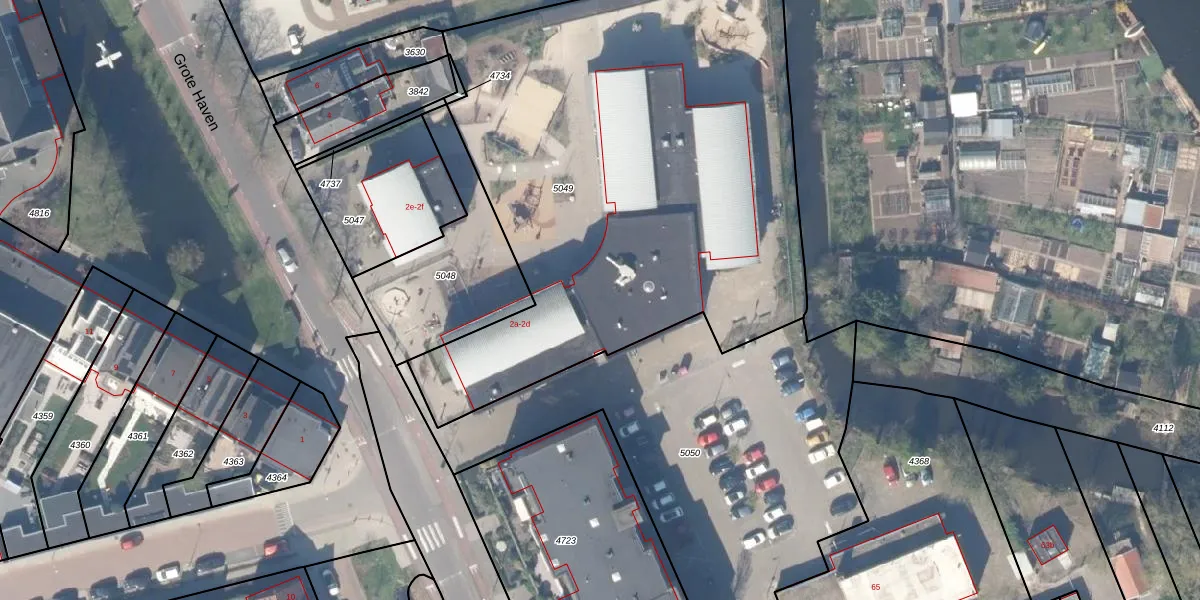Het perceel waarop Grote Haven 2-d staat heeft een oppervlakte van 3295 m². Dit is een zeer groot perceel. De perceeloppervlakte wordt geregistreerd door het Kadaster. Gedetailleerde informatie over de maten van dit perceel kunt u vinden in het rapport Kadastrale kaart met maatvoering van Grote Haven 2-d.