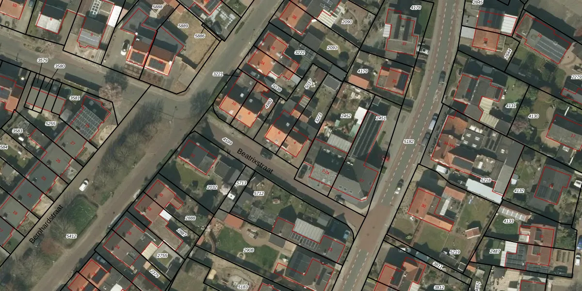 Het perceel waarop Beatrixstraat 4 staat heeft een oppervlakte van 255 m². Dit is een middelgroot perceel. De perceeloppervlakte wordt geregistreerd door het Kadaster. Gedetailleerde informatie over de maten van dit perceel kunt u vinden in het rapport Kadastrale kaart met maatvoering van Beatrixstraat 4.