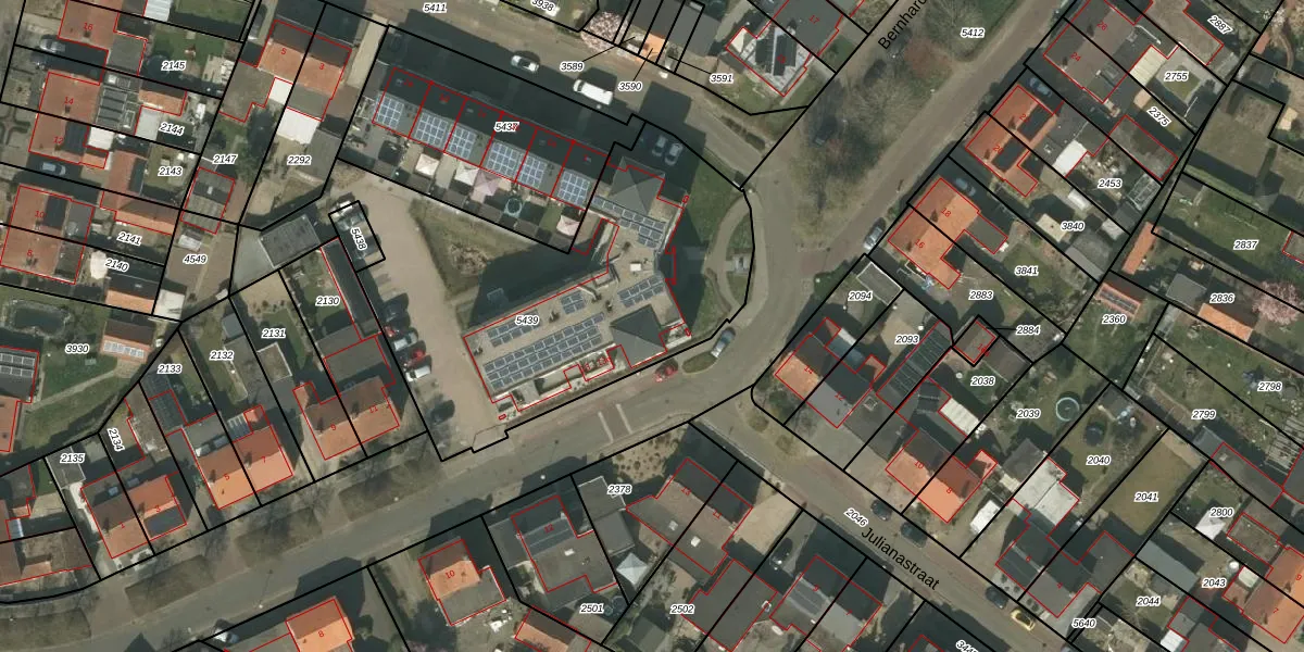 Het perceel waarop Bernhardstraat 13-k staat heeft een oppervlakte van 1960 m². Dit is een zeer groot perceel. De perceeloppervlakte wordt geregistreerd door het Kadaster. Gedetailleerde informatie over de maten van dit perceel kunt u vinden in het rapport Kadastrale kaart met maatvoering van Bernhardstraat 13-k.