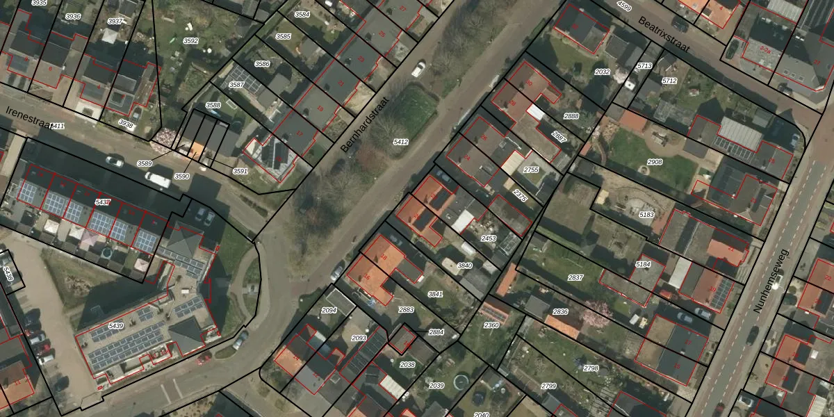 Gebruik de zoekbalk of klik op een perceel voor informatie over de adressen binnen dit perceel.
