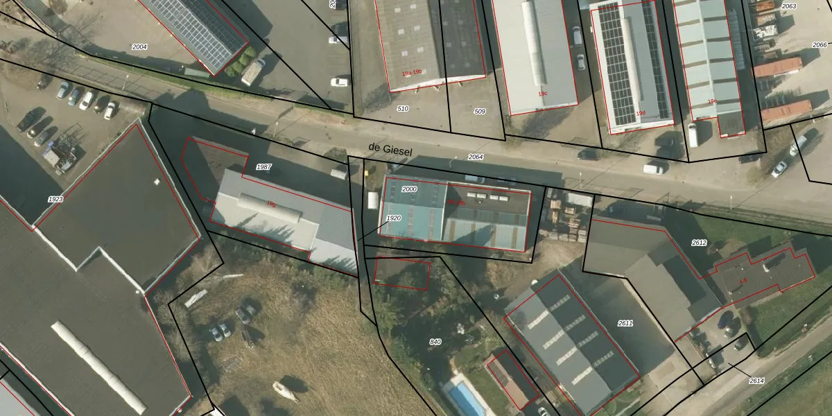 Het perceel waarop de Giesel 19-h staat heeft een oppervlakte van 830 m². Dit is een groot perceel. De perceeloppervlakte wordt geregistreerd door het Kadaster. Gedetailleerde informatie over de maten van dit perceel kunt u vinden in het rapport Kadastrale kaart met maatvoering van de Giesel 19-h.