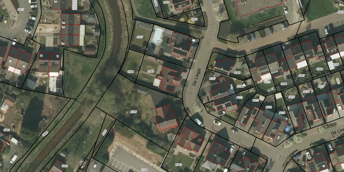 Het perceel waarop De Lingst 20 staat heeft een oppervlakte van 503 m². Dit is een groot perceel. De perceeloppervlakte wordt geregistreerd door het Kadaster. Gedetailleerde informatie over de maten van dit perceel kunt u vinden in het rapport Kadastrale kaart met maatvoering van De Lingst 20.