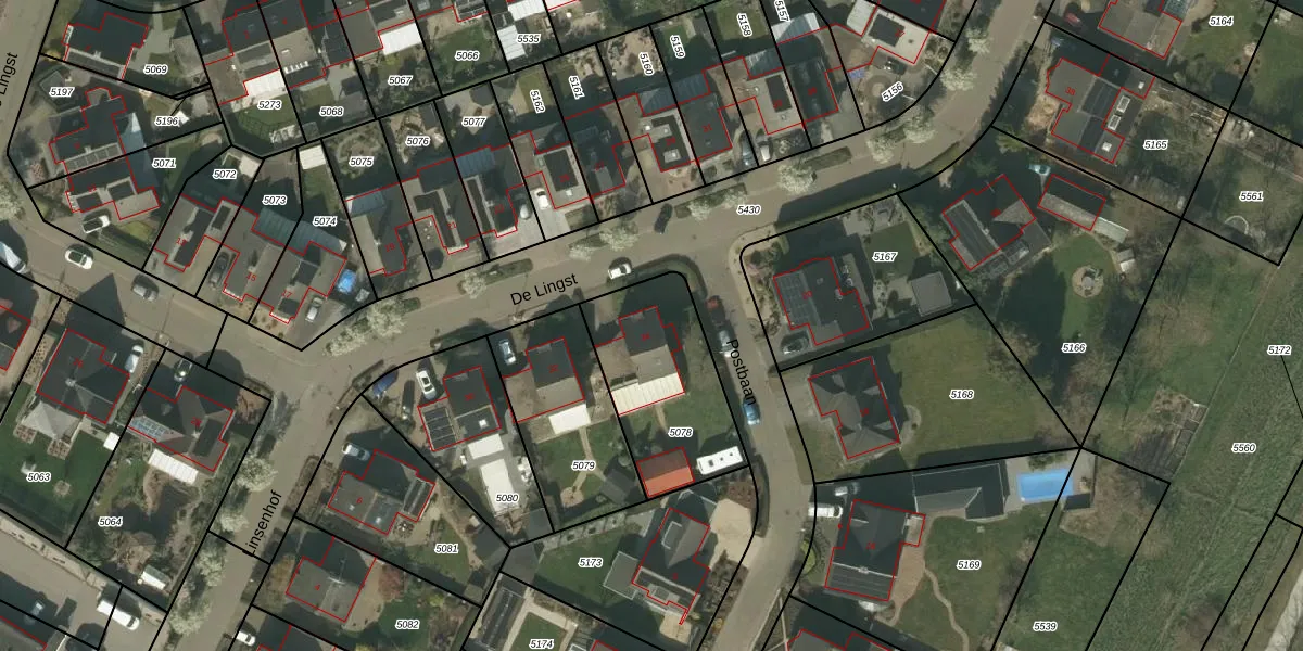 Het perceel waarop De Lingst 34 staat heeft een oppervlakte van 533 m². Dit is een groot perceel. De perceeloppervlakte wordt geregistreerd door het Kadaster. Gedetailleerde informatie over de maten van dit perceel kunt u vinden in het rapport Kadastrale kaart met maatvoering van De Lingst 34.