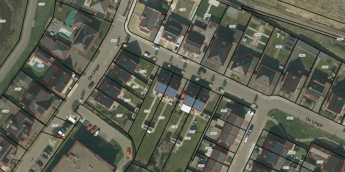 Het perceel waarop De Lingst 63 staat heeft een oppervlakte van 513 m². Dit is een groot perceel. De perceeloppervlakte wordt geregistreerd door het Kadaster. Gedetailleerde informatie over de maten van dit perceel kunt u vinden in het rapport Kadastrale kaart met maatvoering van De Lingst 63.