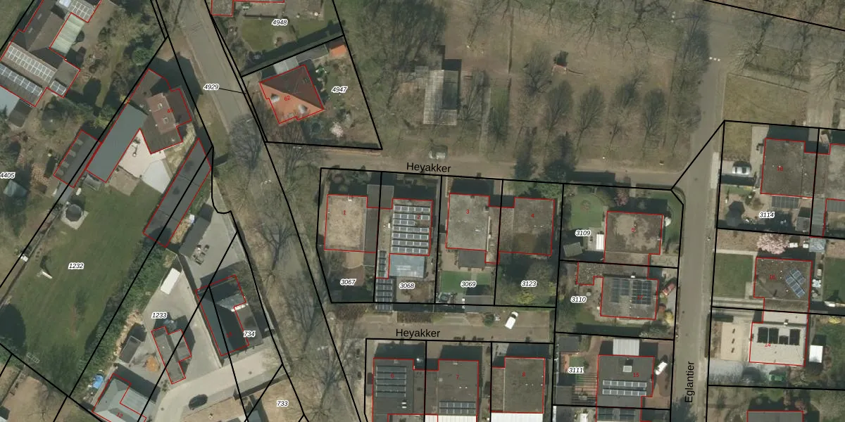 Het perceel waarop Heyakker 2 staat heeft een oppervlakte van 445 m². Dit is een groot perceel. De perceeloppervlakte wordt geregistreerd door het Kadaster. Gedetailleerde informatie over de maten van dit perceel kunt u vinden in het rapport Kadastrale kaart met maatvoering van Heyakker 2.