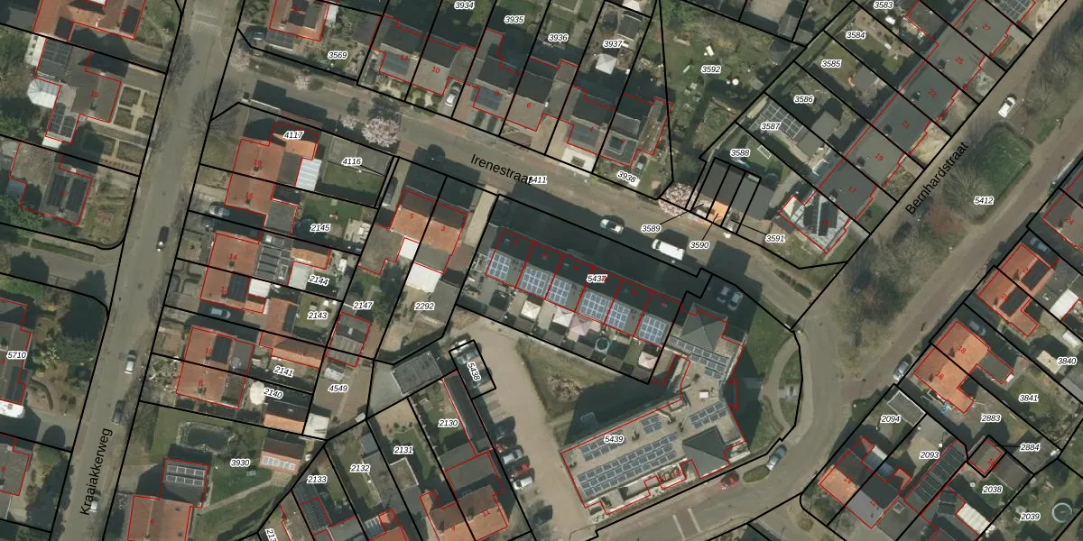 Het perceel waarop Irenestraat 1-d staat heeft een oppervlakte van 870 m². Dit is een groot perceel. De perceeloppervlakte wordt geregistreerd door het Kadaster. Gedetailleerde informatie over de maten van dit perceel kunt u vinden in het rapport Kadastrale kaart met maatvoering van Irenestraat 1-d.