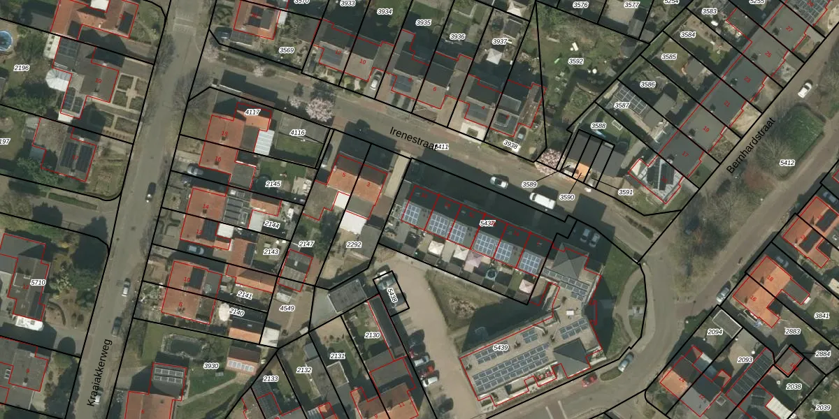 Het perceel waarop Irenestraat 1-e staat heeft een oppervlakte van 870 m². Dit is een groot perceel. De perceeloppervlakte wordt geregistreerd door het Kadaster. Gedetailleerde informatie over de maten van dit perceel kunt u vinden in het rapport Kadastrale kaart met maatvoering van Irenestraat 1-e.