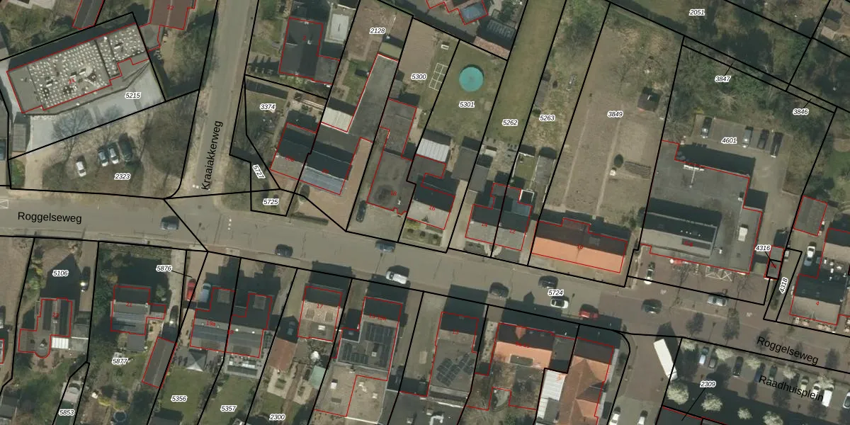 Roggelseweg 16 is gelegen op kadastraal perceel HLN02A5301. Deze kadastrale aanduiding is uniek en wordt gebruikt door het Kadaster om eigendomsrechten en andere zakelijke rechten vast te leggen. Het perceel maakt onderdeel uit van de kadastrale gemeente Haelen.