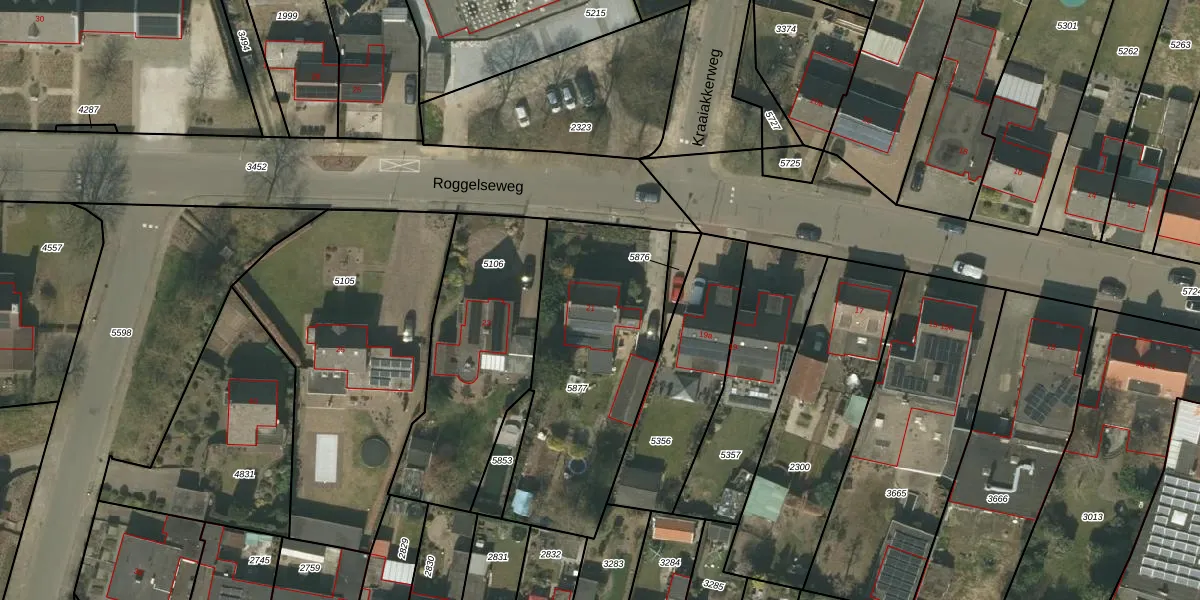 Roggelseweg 21 is gelegen op kadastraal perceel HLN02A5877. Deze kadastrale aanduiding is uniek en wordt gebruikt door het Kadaster om eigendomsrechten en andere zakelijke rechten vast te leggen. Het perceel maakt onderdeel uit van de kadastrale gemeente Haelen.