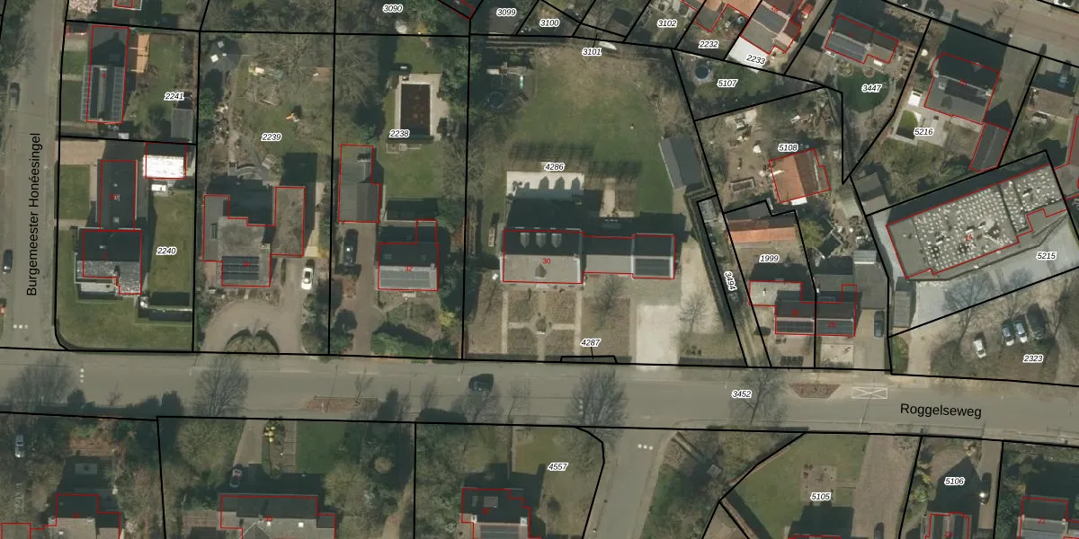 Roggelseweg 30 is gelegen op kadastraal perceel HLN02A4286. Deze kadastrale aanduiding is uniek en wordt gebruikt door het Kadaster om eigendomsrechten en andere zakelijke rechten vast te leggen. Het perceel maakt onderdeel uit van de kadastrale gemeente Haelen.