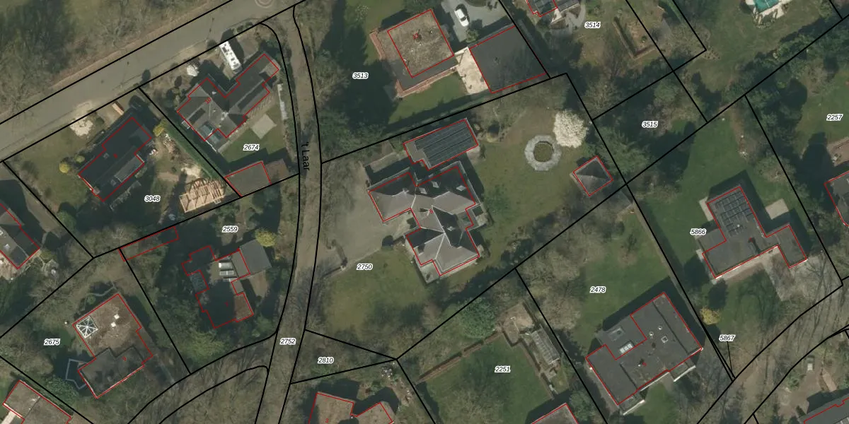 Het perceel waarop 't Laar 5 staat heeft een oppervlakte van 2930 m². Dit is een zeer groot perceel. De perceeloppervlakte wordt geregistreerd door het Kadaster. Gedetailleerde informatie over de maten van dit perceel kunt u vinden in het rapport Kadastrale kaart met maatvoering van 't Laar 5.