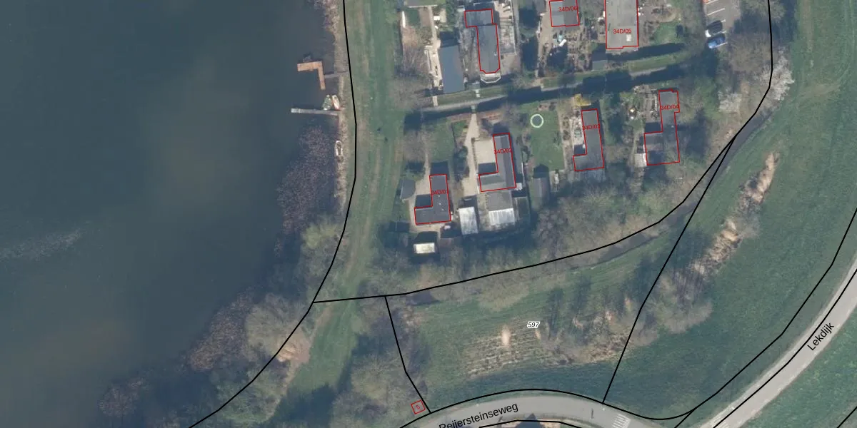 Het perceel waarop Lekdijk 34-d-01 staat heeft een oppervlakte van 3,6 ha. Dit is een zeer groot perceel. De perceeloppervlakte wordt geregistreerd door het Kadaster. Gedetailleerde informatie over de maten van dit perceel kunt u vinden in het rapport Kadastrale kaart met maatvoering van Lekdijk 34-d-01.