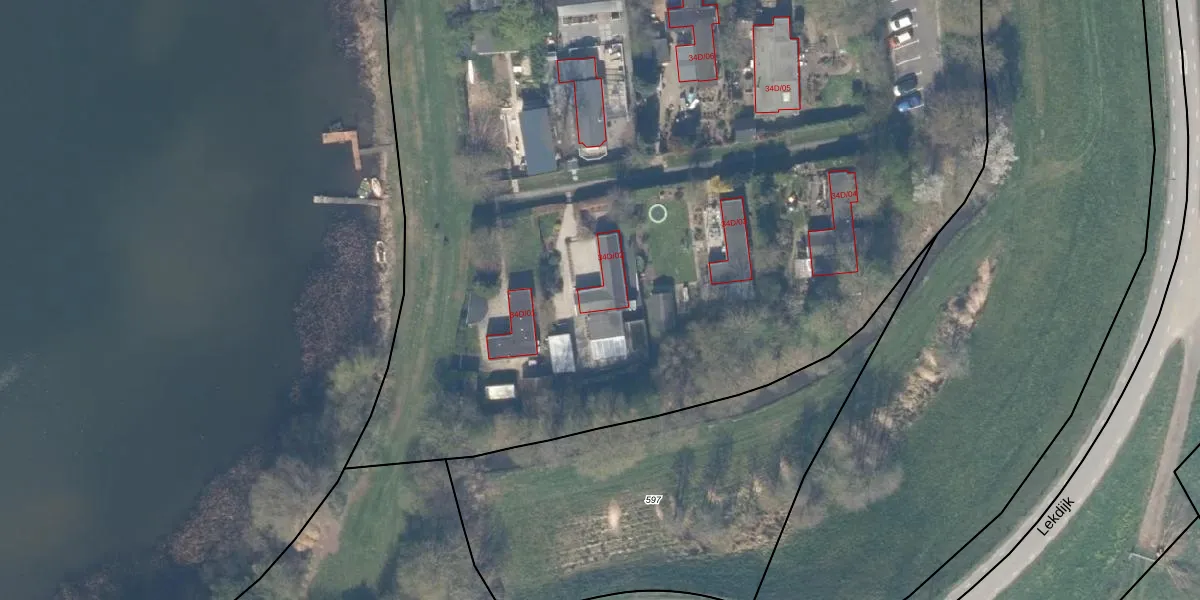 Het perceel waarop Lekdijk 34-d-02 staat heeft een oppervlakte van 3,6 ha. Dit is een zeer groot perceel. De perceeloppervlakte wordt geregistreerd door het Kadaster. Gedetailleerde informatie over de maten van dit perceel kunt u vinden in het rapport Kadastrale kaart met maatvoering van Lekdijk 34-d-02.