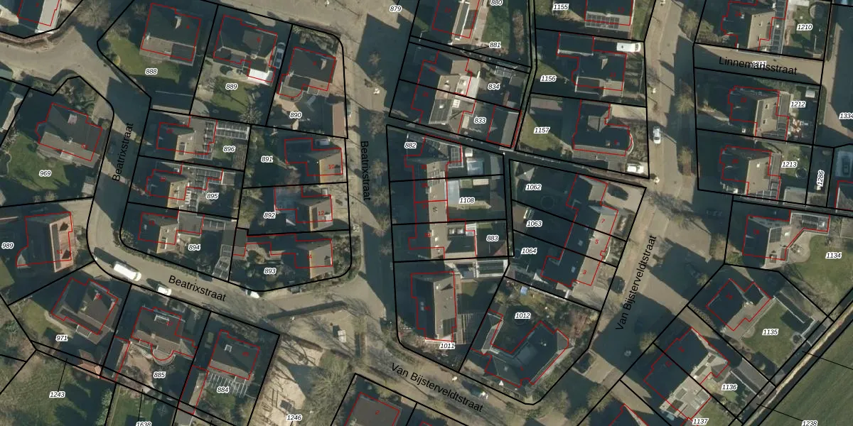 Het perceel waarop Beatrixstraat 37 staat heeft een oppervlakte van 278 m². Dit is een middelgroot perceel. De perceeloppervlakte wordt geregistreerd door het Kadaster. Gedetailleerde informatie over de maten van dit perceel kunt u vinden in het rapport Kadastrale kaart met maatvoering van Beatrixstraat 37.