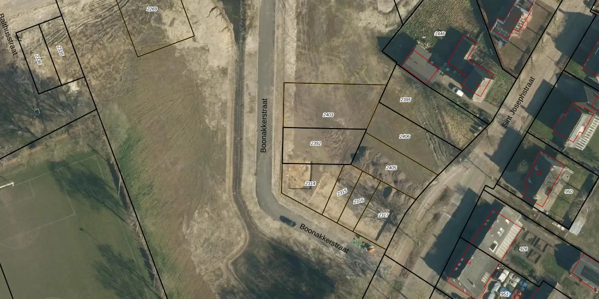 Boonakkerstraat 33 is gelegen op kadastraal perceel HVR00N2392. Deze kadastrale aanduiding is uniek en wordt gebruikt door het Kadaster om eigendomsrechten en andere zakelijke rechten vast te leggen. Het perceel maakt onderdeel uit van de kadastrale gemeente Hilvarenbeek.