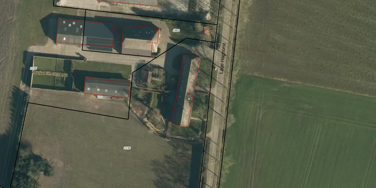 Het perceel waarop Lage Haghorst 33 staat heeft een oppervlakte van 6915 m². Dit is een zeer groot perceel. De perceeloppervlakte wordt geregistreerd door het Kadaster. Gedetailleerde informatie over de maten van dit perceel kunt u vinden in het rapport Kadastrale kaart met maatvoering van Lage Haghorst 33.