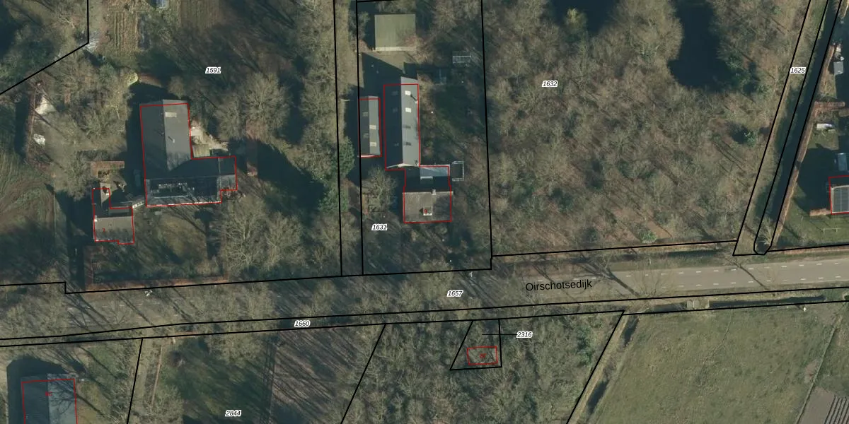 Oirschotsedijk 9 is gelegen op kadastraal perceel HVR00N1631. Deze kadastrale aanduiding is uniek en wordt gebruikt door het Kadaster om eigendomsrechten en andere zakelijke rechten vast te leggen. Het perceel maakt onderdeel uit van de kadastrale gemeente Hilvarenbeek.