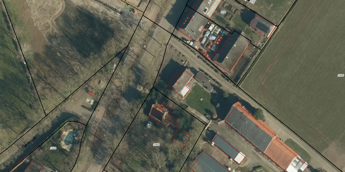 Het adres ligt op het perceel HVR00-N-1563, dat zich in de kadastrale gemeente Hilvarenbeek bevindt. Het perceel is met 9,5 ha relatief groot. Het gemiddelde ligt in de kadastrale gemeente Hilvarenbeek op 1,0 ha. De grootste perceeloppervlakte in de kadastrale gemeente is 3,92 km². De kleinste oppervlakte bedraagt 0 m². Op het perceel zijn 2 adressen aanwezig. In de Basisregistratie Kadaster (BRK) werden de grenzen van het perceel geregistreerd op 18-06-2010.
