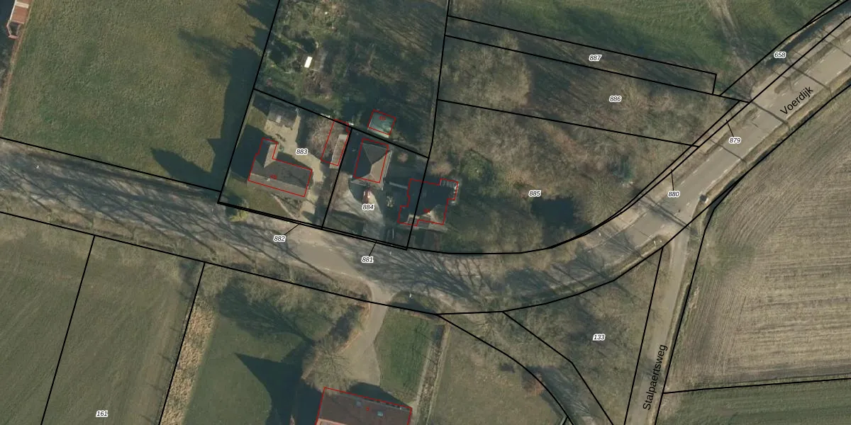 Het perceel waarop Voerdijk 4-A staat heeft een oppervlakte van 1585 m². Dit is een zeer groot perceel. De perceeloppervlakte wordt geregistreerd door het Kadaster. Gedetailleerde informatie over de maten van dit perceel kunt u vinden in het rapport Kadastrale kaart met maatvoering van Voerdijk 4-A.