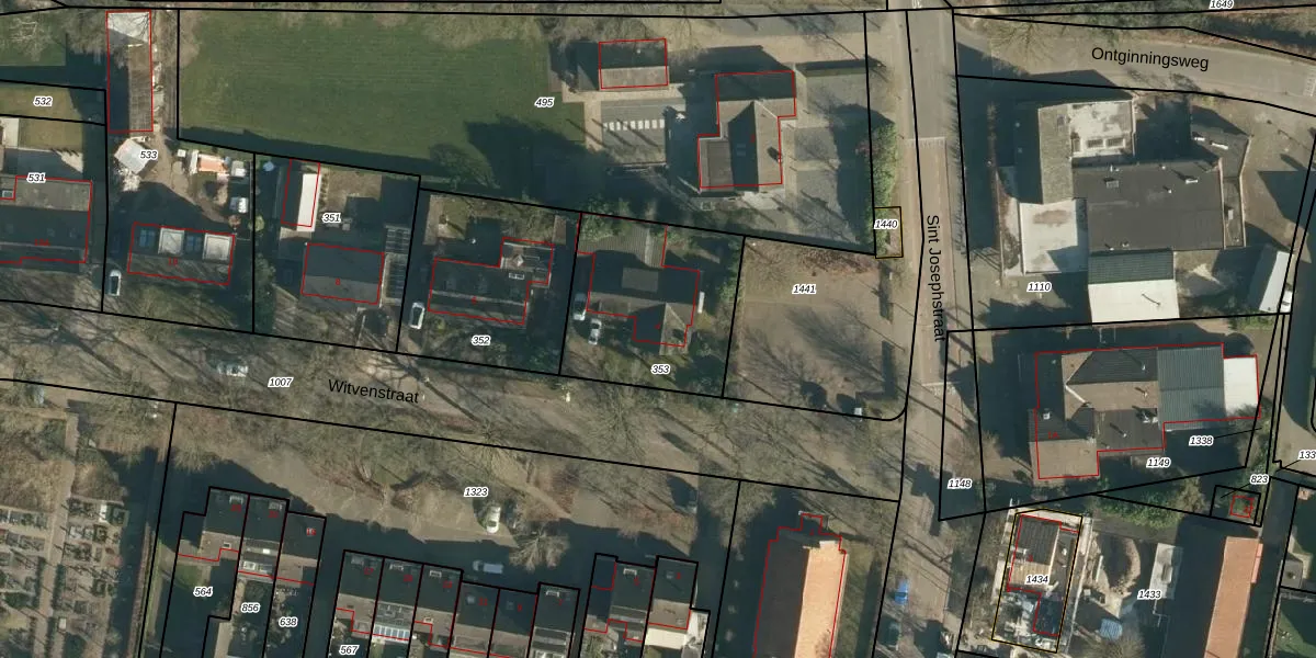 Het perceel waarop Witvenstraat 4 staat heeft een oppervlakte van 629 m². Dit is een groot perceel. De perceeloppervlakte wordt geregistreerd door het Kadaster. Gedetailleerde informatie over de maten van dit perceel kunt u vinden in het rapport Kadastrale kaart met maatvoering van Witvenstraat 4.