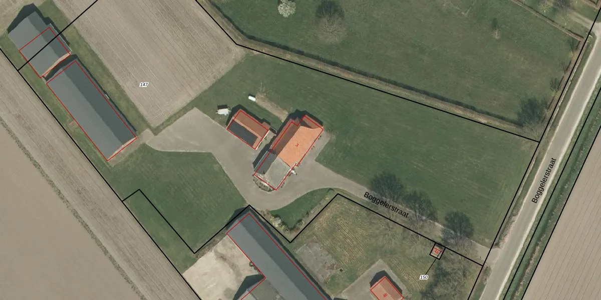 Het perceel waarop Boggelerstraat 3 staat heeft een oppervlakte van 9920 m². Dit is een zeer groot perceel. De perceeloppervlakte wordt geregistreerd door het Kadaster. Gedetailleerde informatie over de maten van dit perceel kunt u vinden in het rapport Kadastrale kaart met maatvoering van Boggelerstraat 3.