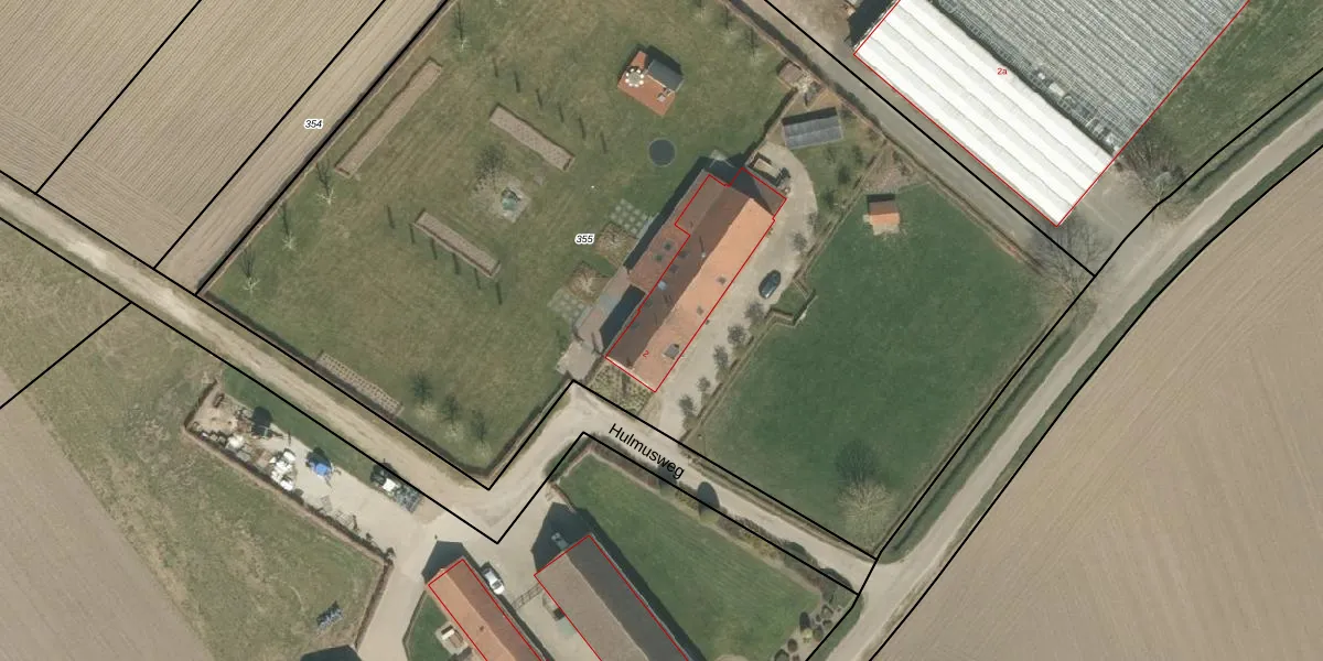 Hulmusweg 2 is gelegen op kadastraal perceel HSL00M355. Deze kadastrale aanduiding is uniek en wordt gebruikt door het Kadaster om eigendomsrechten en andere zakelijke rechten vast te leggen. Het perceel maakt onderdeel uit van de kadastrale gemeente Hunsel.