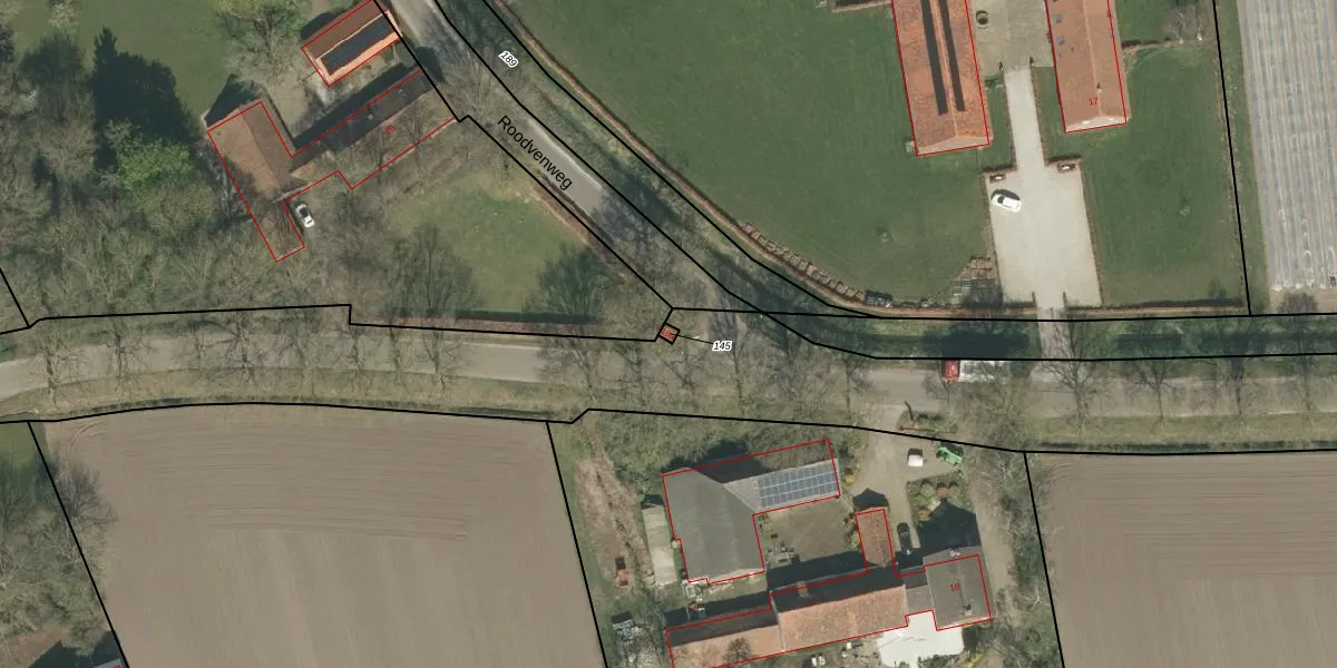Het perceel waarop het adres ligt is HSL00-G-145. De afkorting 'HSL00' staat voor kadastrale gemeente Hunsel. Het perceel is 5 m² groot. Dat is kleiner dan de gemiddelde perceeloppervlakte in Hunsel, dat op 7206,64 m² ligt. Het kleinste perceel in de kadastrale gemeente is 0 m² groot. De grootste perceeloppervlakte is 22,0 ha. Dit is het enige adres dat aanwezig is op het perceel. De laatste wijziging in het de Basisregistratie Kadaster (BRK) was op 19-06-2006.