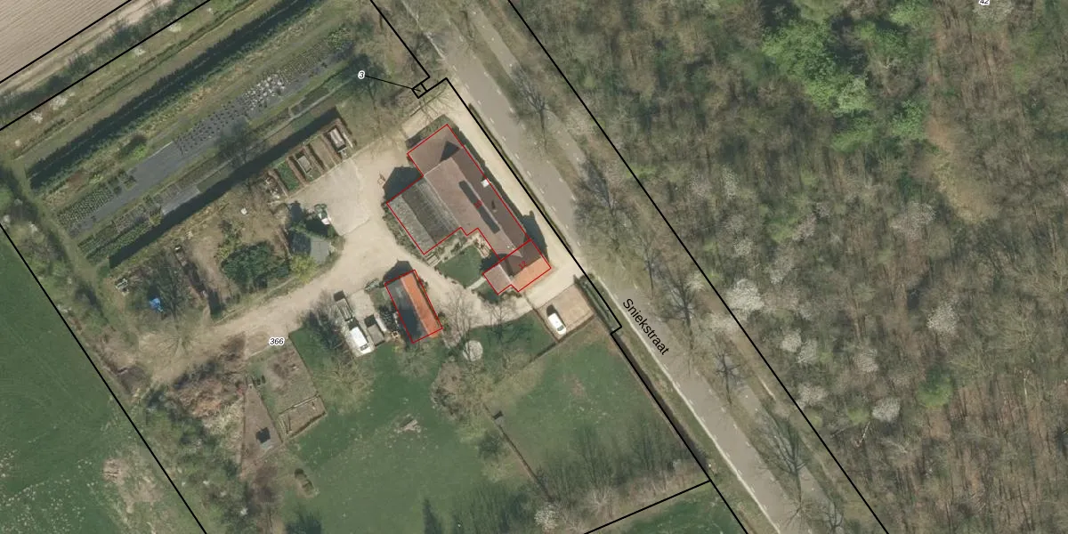 Sniekstraat 12 is gelegen op kadastraal perceel HSL00L366. Deze kadastrale aanduiding is uniek en wordt gebruikt door het Kadaster om eigendomsrechten en andere zakelijke rechten vast te leggen. Het perceel maakt onderdeel uit van de kadastrale gemeente Hunsel.