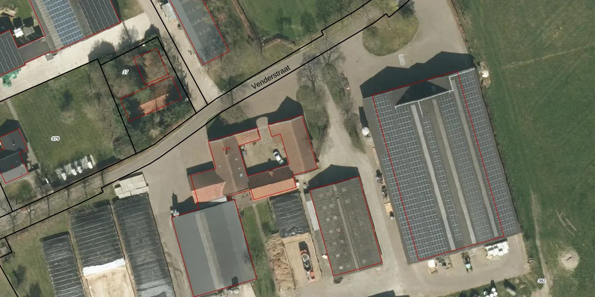 Het perceel waarop Venderstraat 6-a staat heeft een oppervlakte van 9,2 ha. Dit is een zeer groot perceel. De perceeloppervlakte wordt geregistreerd door het Kadaster. Gedetailleerde informatie over de maten van dit perceel kunt u vinden in het rapport Kadastrale kaart met maatvoering van Venderstraat 6-a.